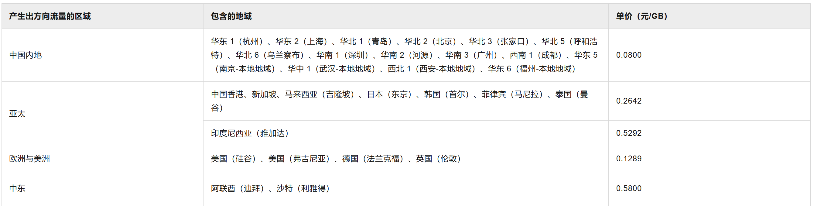 举例,阿里云端口资源占用费以及出于方向流量费标准如下,仅供参考,实际的以各大公有云厂商官网为准