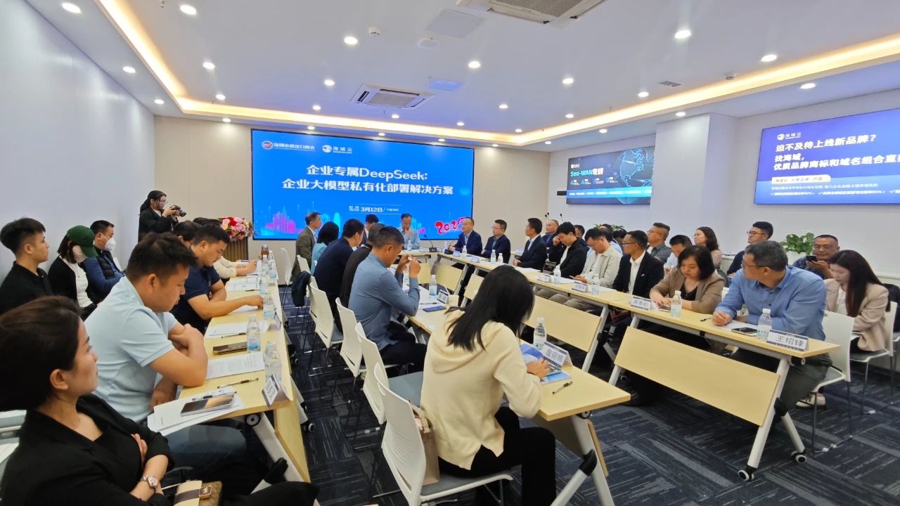 2025年3月12日,海域科技集团联合深圳进出口商会联合主办的“企业AI大模型私有化部署解决方案”主题分享会在海域科技集团深圳总部成功举行。活动聚焦DeepSeek等AI大模型企业私有化部署落地痛点及实践路径,吸引众多企业代表参与,共同探讨AI技术驱动企业升级的落地策略。