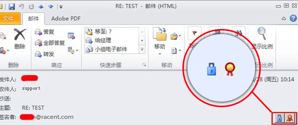 利用S/MIME邮件证书加密的电子邮件只有预定的收件人使用私钥可解密查看。