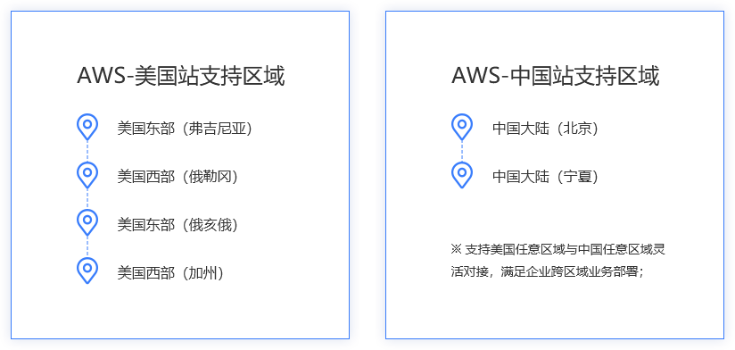 完美兼容AWS所有云服务,无需修改现有业务架构,即可实现跨区域云资源的无缝开通。