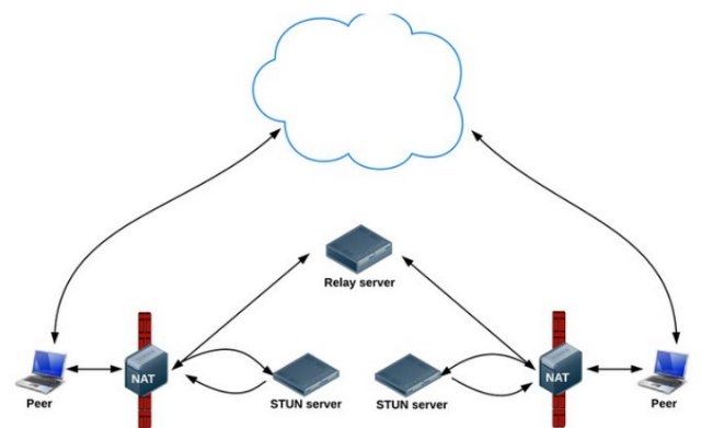 5. TURN(relay):对STUN进行扩展的网络协议,主要添加了Relay功能,即当STUN无法顺利建立UDP通讯连接时,使用公网服务器作为中继,对来往服务器进行转发,该转发协议即为TURN;